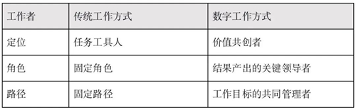 在傳統(tǒng)工作方式與數(shù)字化工作方式中,工作者的內(nèi)涵是完全不同,詳見下表: