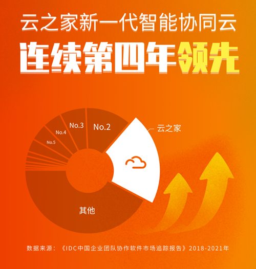 據研究機構IDC數據顯示,2015年起云之家連續三年蟬聯大中型企業移動辦公市場用戶數第一;2018年至今持續摘冠中國SaaS協同軟件市場;2021年IDC發布的《中國企業團隊協作云2021廠商評估》報告中,云之家位居領導者象限。