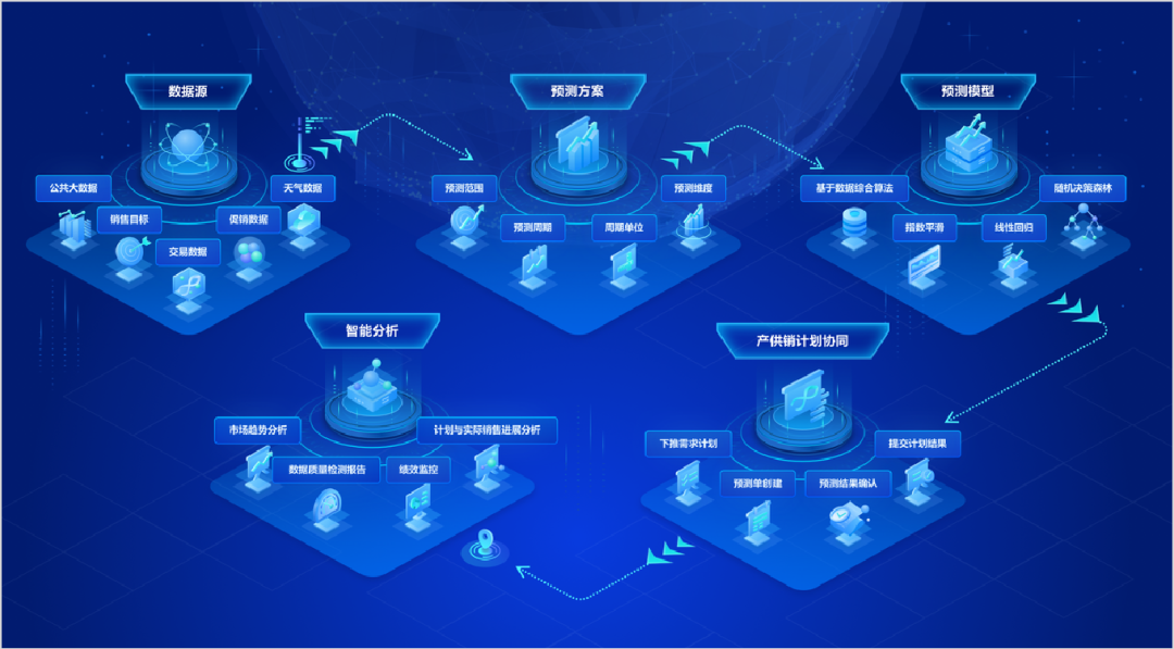 ②預測未來:利用云端大數據平臺、模型及算力優勢,為企業提供未來一段時間的銷量數據,優化庫存和排產,做好產供銷協同;