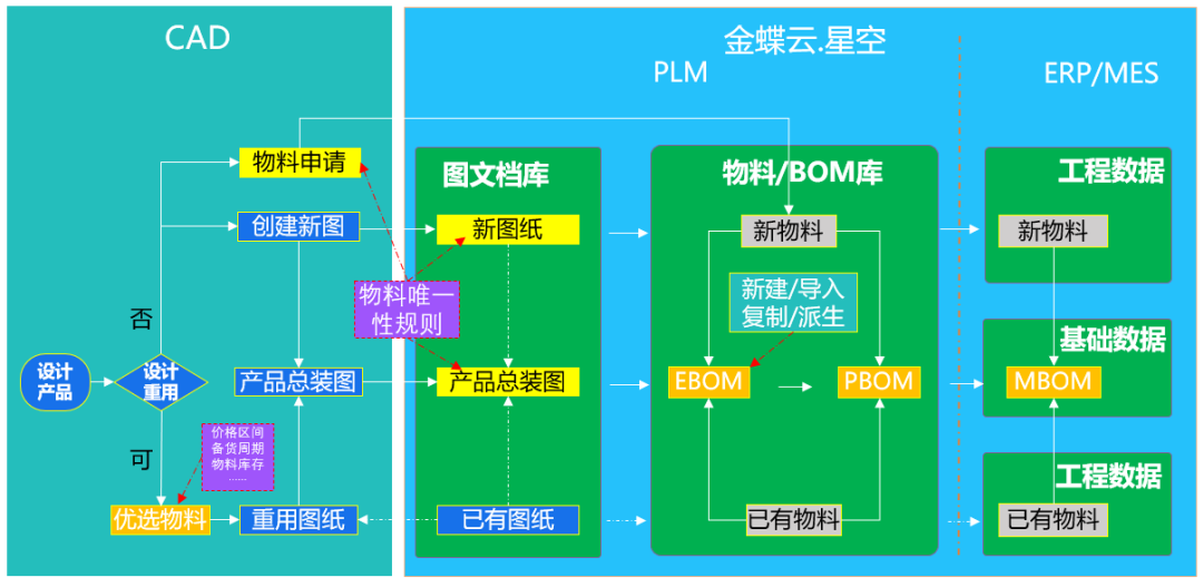金蝶云·星空PLM產研一體化管理平臺,支持企業技術部門建設知識體系和流程體系的同時,還能實現產研協同開發、產研數據實時同步,能夠很好地滿足用戶工作和企業管理需要。